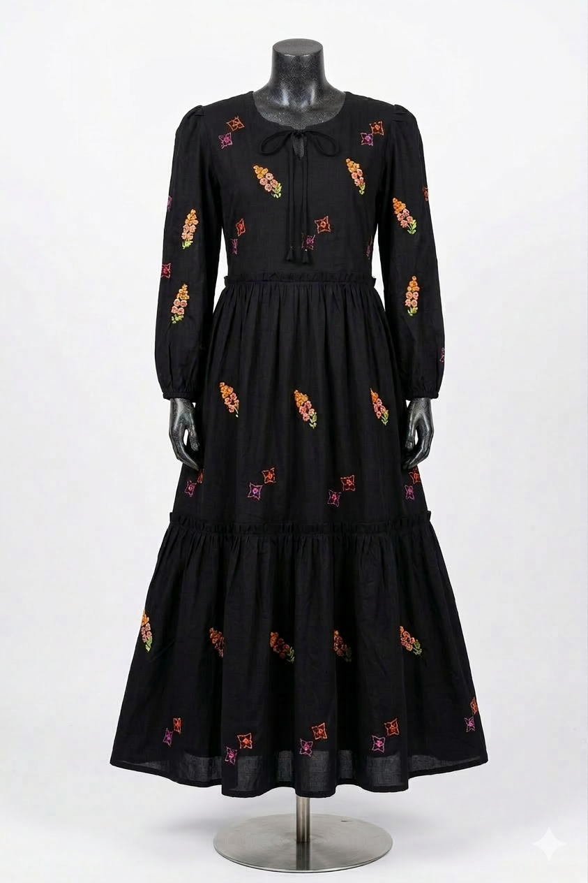 Black handmade embroidered one piece Tunic